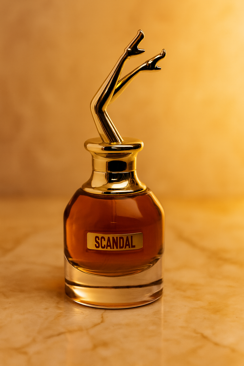 *ادوپرفیوم Scandal* عطری است پرانرژی، زنانه و جسور؛ با شیشهای نمادین که طراحی درب آن پاهای براق زنی را نشان میدهد — نشانهای از طنازی و شادابی.