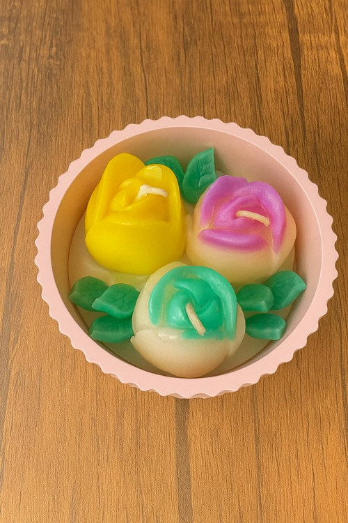 شمع کاسه طرح گل بزرگ دست ساز