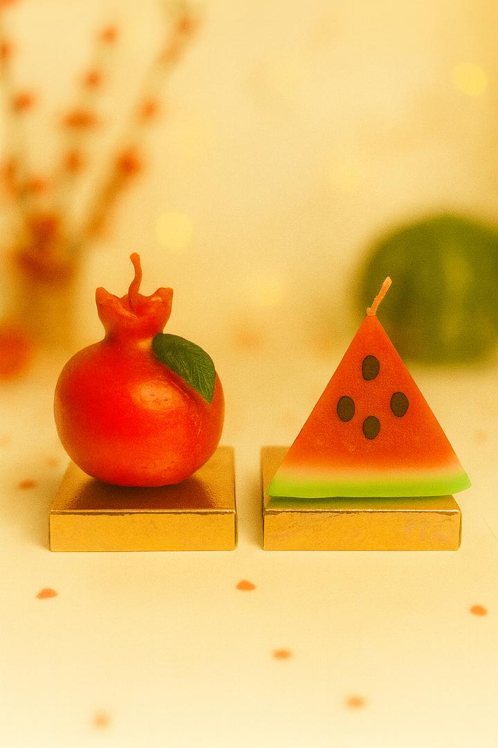 * شامل دو شمع طرح انار و قاچ هندوانه
