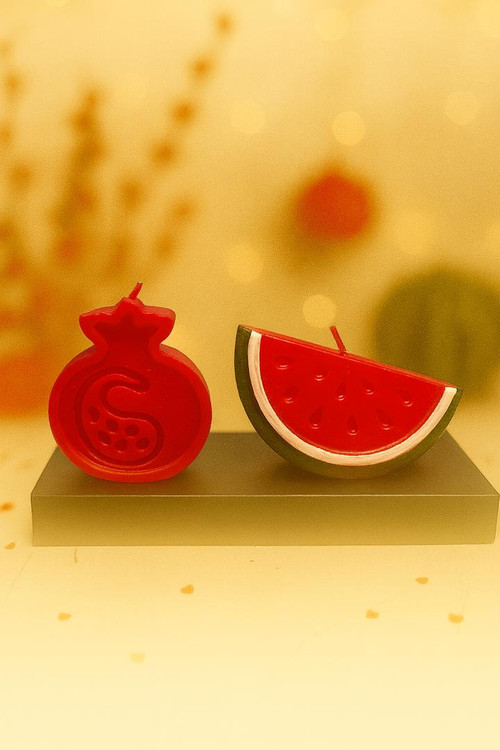🕯️ ست شمع یلدایی دوعددی طرح انار و هندوانه – ساده، شیک و کاملاً نمادین