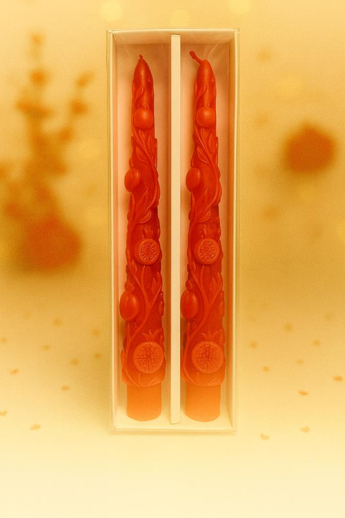 🕯️ ست شمع یلدایی قلمی طرح انار حکاکیشده – بسته دو عددی