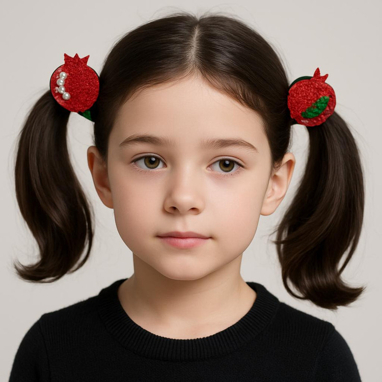 **گیره مو یلدایی انار** یک اکسسوری جذاب و چشمگیر، مخصوص تکمیل استایل شب یلداست. بدنه اناریشکل با اکلیل درخشان قرمز و برگ سبز براق طراحی شده و وجود مرواریدهای سفید به آن جلوهای شیک و متفاوت میدهد.