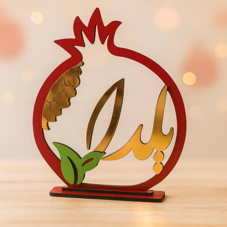 # دکوری یلدایی طرح انار با نوشته «یلدا» – تزیین خاص میز و سفره شب یلدا