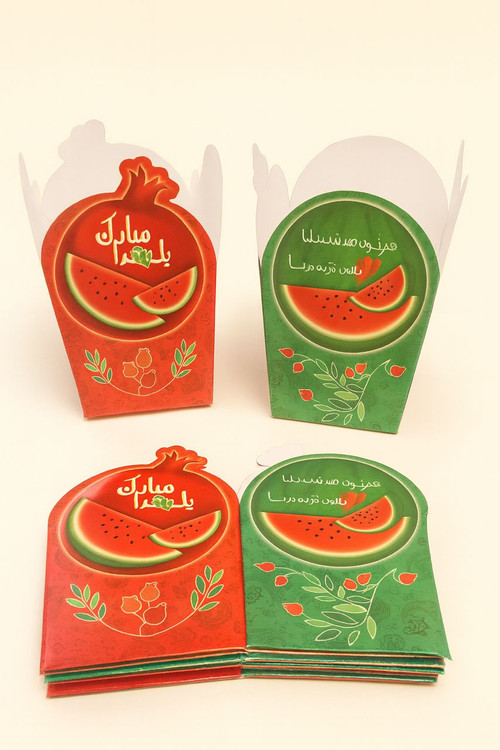 این جعبههای یلدایی با طراحی جذاب هندوانه و انار و نوشتههای زیبای مخصوص شب یلدا، بهترین انتخاب برای پذیرایی شیک و تمدار در شبهای سرد پاییز و زمستان هستند.