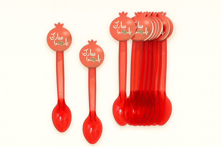 روی بخش بالایی قاشق طرح انار با نوشته «یلدا مبارک» چاپ شده که حالوهوای سنتی و اصیل شب چله را بیشتر میکند.