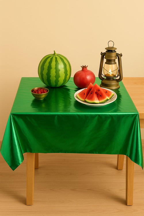 رنگ سبز نماد تازگی و طراوت است و ترکیب آن با هندوانه، انار و سایر دکورهای یلدایی، هارمونی دلنشینی را ایجاد میکند. بافت متالایز سفره بهگونهای است که در عکسها بسیار زیبا دیده میشود و برای ثبت تصاویر جذاب از میز شب یلدای شما بینظیر است.