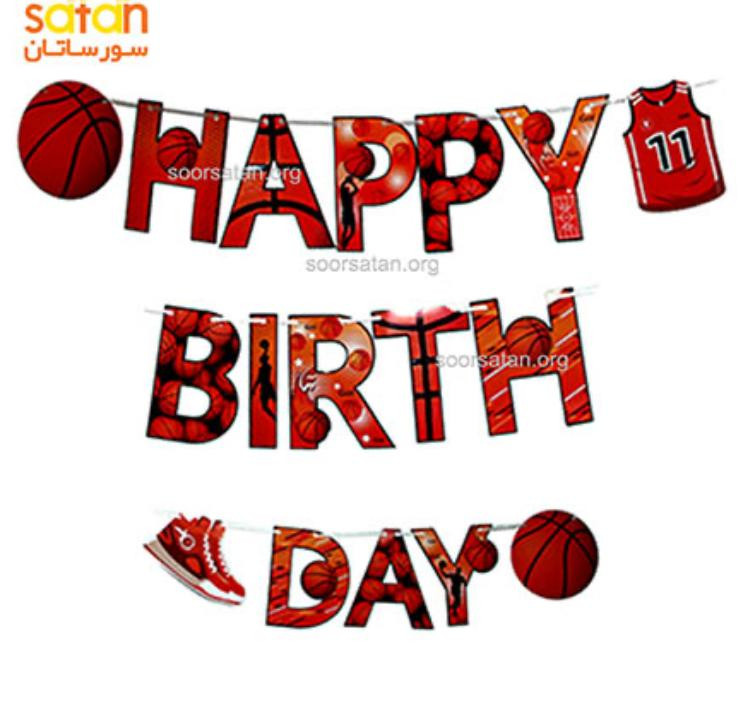 تم تولد بسکتبال با طرح توپ و زمین بسکتبال، مخصوص علاقهمندان به این ورزش محبوب است. رنگ نارنجی و مشکی، چاپ دقیق و طراحی جذاب باعث میشود فضای جشن ورزشی و پرانرژی باشد.