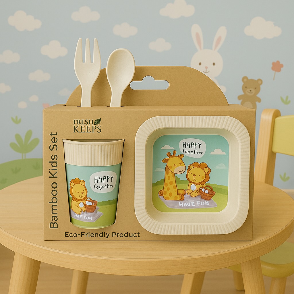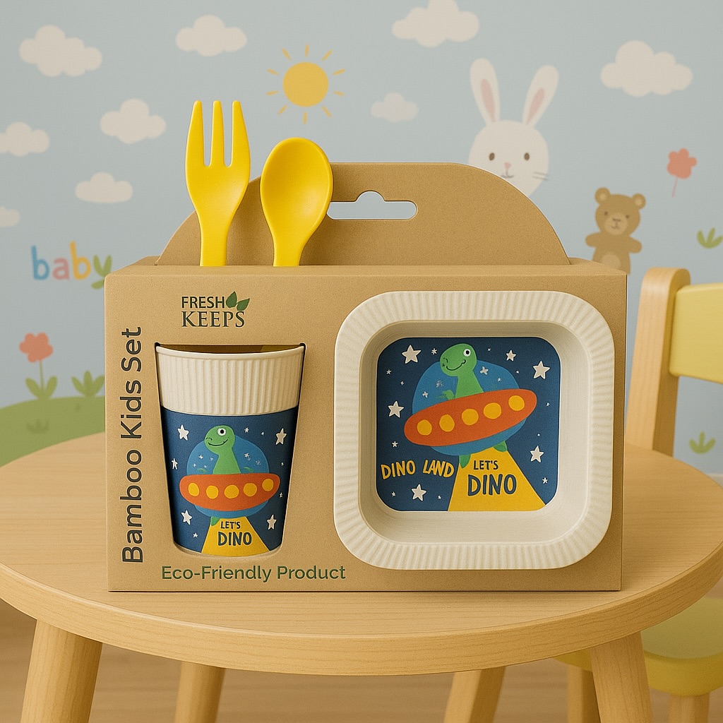 ست بامبو کودک، هم دوستدار محیطزیسته و هم دنیای رنگی و فانتزی بچهها رو کامل میکنه با طرحهای شاد و متنوع (زمستونی ، دایناسوری ، حیوانات باغوحش ، هالووینی )