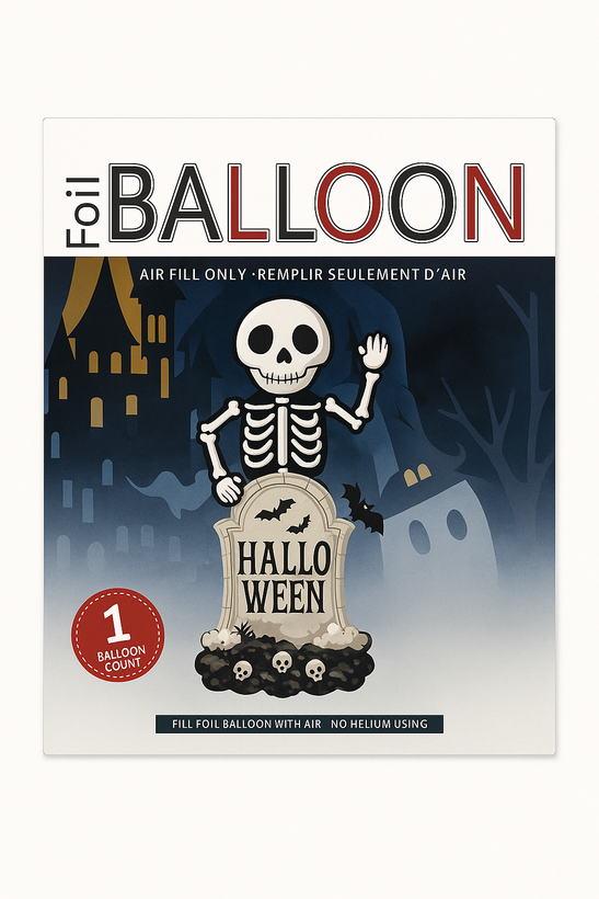 بادکنک فویلی تم هالووین مدل اسکلت و سنگ قبر