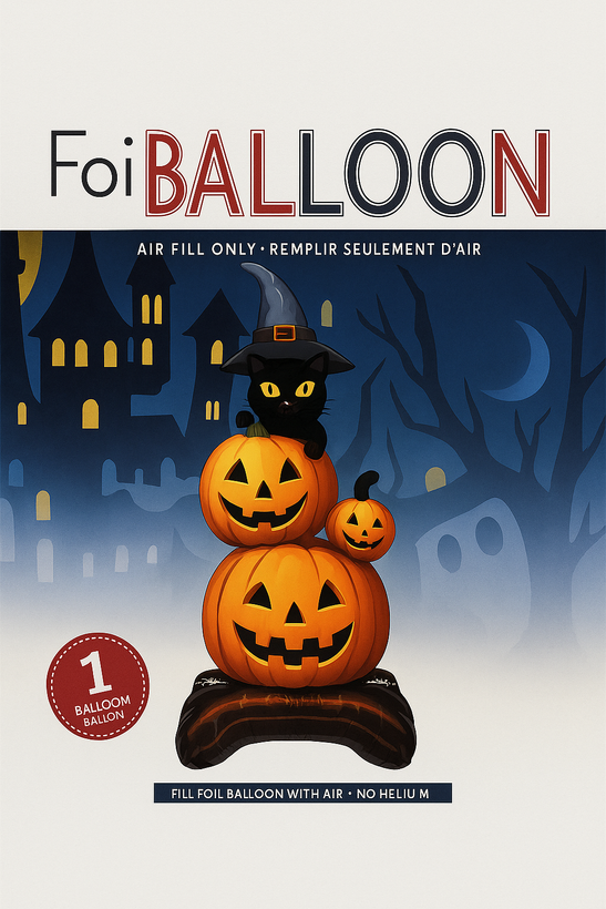 بادکنک فویلی تم هالووین – طرح گربه سیاه و کدوهای سه طبقه